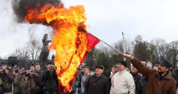 7 листопада по Україні пройшли мітинги, в основному заборонені судом, реакціонерних, антиукраїнських сил, які називають себе різними комуністами, соціалістами тощо. Проблема в тому, що влада в Україні і далі належить колишнім членам КПРС та активістам ВЛКСМ. Тому в Україні замість церков і далі стоять пам"ятники Леніну, а люди не розуміють в якій країні ми живемо і чому тут такий бардак. (фото: м. Львів Монумент Слави по вул. Стрийській 07 листопада 2008 р. Протест націонал-патріотичних сил проти проведення "червоного шабашу" у Львові (повідомили ЛМО Української партії))